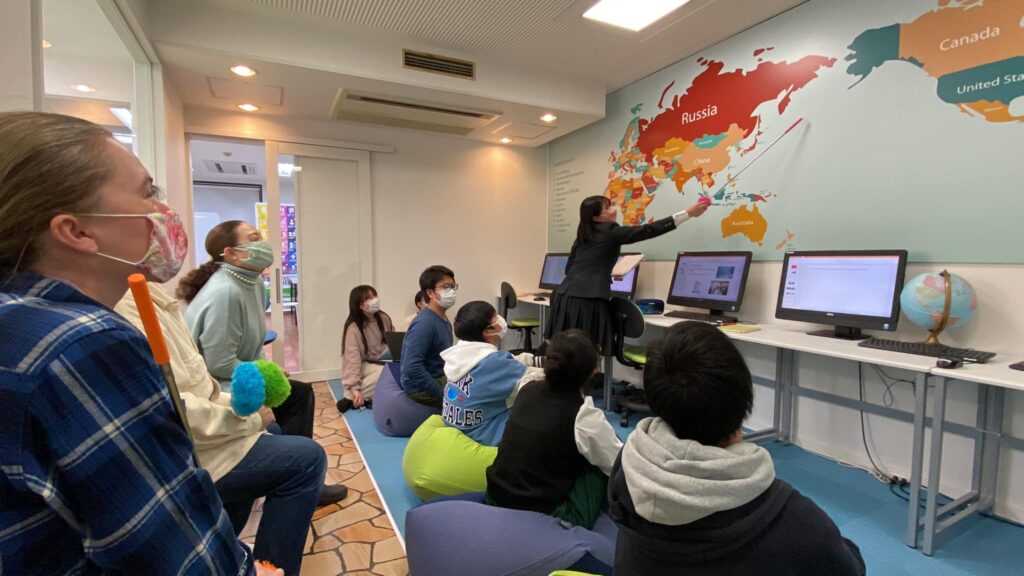 “世界が大きなパズルで、国の位置を自由に移動できたとして、どの国をどこに移動させるかを英語で説明する事。ただし、移動する事によって、その国が抱える問題の解決が図られなければいけない。色んなおもしろい意見が出ました