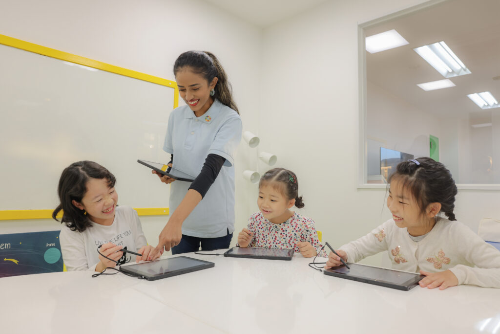 GLOBAL CLUB 小学生対象(学年別クラス編成)90分授業 グローバル・スタンダードな学習を提供するクラスです。最初の30分は基礎の強化。フォニックスや音読を通して英語の読み方や綴りの特徴を網羅。続く30分は、トピックに合わせてパソコンやタブレットを使って英語で調べ学習。世界に目を向ける事を意識した楽しいトピックで、グローバルな知的好奇心を育みます。最後の30分でプレゼンテーションを作成し、クラスの前で発表。英語を使う事への「慣れ」を通して、自然に会話できる様になります。タブレット(キーノート)またはパソコン(PowerPoint)で作成したプレゼンテーションは、USBメモリーに保存。IT知識の強化と共に、SDGs達成の為の紙媒体の使用削減にも貢献。次世代を担う子どもたちにしっかりグローバルな意識の芽を育てます。開催・・・枚方校/長尾校開催日・・・平日及び土曜日(スケジュールはスクールまでお問い合わせください)お月謝・・・¥12,500円+税 E CLASS (小学生対象) 50分授業 英語の基礎をしっかりと身につけ、表現力を広げていくクラスです。フォニックスを応用して、単語や文章を自分で読めるようになる力を育てます。絵本やストーリー教材を使いながら読解力を養い、会話練習やアクティビティを通じて「聞く・話す・読む・書く」のバランスを楽しく学びます。英語で表現する楽しさを実感しながら、次のステップへとつなげていきます。開催・・・茅ヶ崎校/長尾校開催日・・・平日及び土曜日(スケジュールはスクールまでお問い合わせください)お月謝・・・¥9,000円+税 ここをクリック